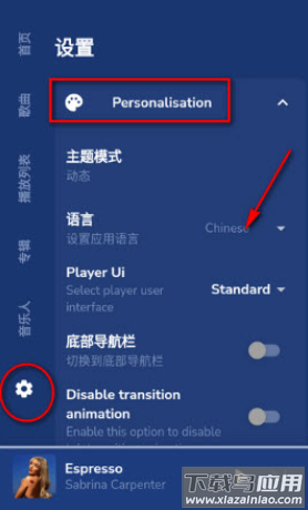 点击个人中心齿轮图标进入设置;选择第三项Language Settings;在展开的列表里勾选简体中文;部分系统需要重启应用才能完全切换;