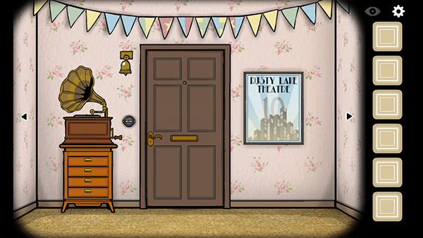 初始场景需要整理彩旗获取小旗子;厨房水池下方藏着火柴盒;留声机抽屉有刀具和螺丝刀;用螺丝刀拆解警报器获得电线;画像小游戏需要消除图案直到数字归零;获得的唱片需配合磁针使用;冰箱冷冻水球制作冰块;精确切割蛋糕触发隐藏机制;老人需要酒和音乐才会给出邮票;五面彩旗正确排列可获得螺丝;泡泡糖经过多次使用最终变成粘合剂;四张邮票对应画像密码1966;时光倒流后给爷爷手枪能改变命运。