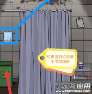 1、垃圾放进垃圾桶,毛巾用来擦墙壁。