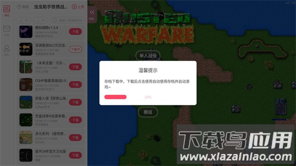 铁锈战争内置MOD菜单是一款经典的像素风策略塔防游戏,玩家将指挥机械军团展开激烈对抗。该版本已集成大量免费模组,包含全新单位、地图和玩法,大幅提升游戏可玩性;独特的资源争夺与兵种搭配机制考验战术思维,多人在线对战更能体验实时竞技乐趣。游戏支持自定义地图编辑,搭配简易模组安装系统,轻松打造专属战场。高清复古画风配合流畅操作手感,带来沉浸式战争体验。喜欢即时战略的玩家快来下载体验吧。