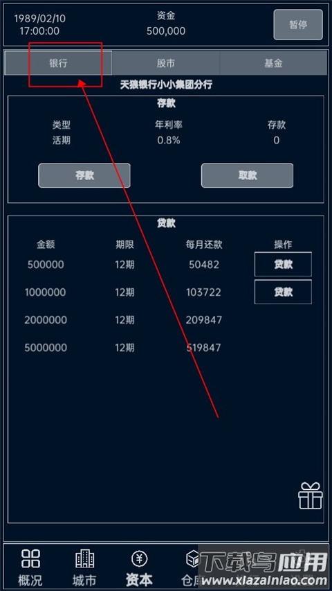 银行系统提供基础金融服务,活期存取款没有门槛限制;贷款额度与公司等级挂钩,初始可贷50万,每提升1级解锁更高额度,需注意分期还款会在每月1日自动扣除;贵金属交易中,金条单价499万,银条74万,价格随市场波动调整,目前功能较为单一。