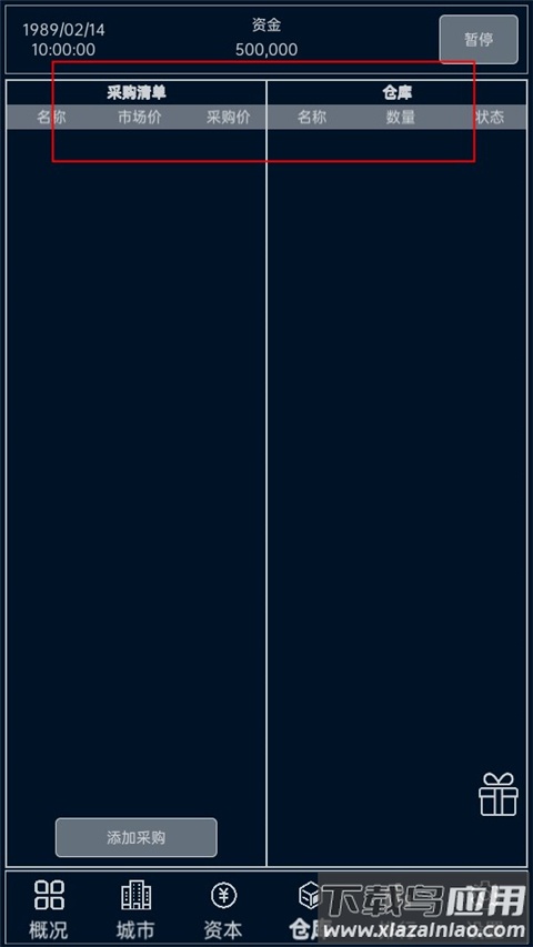 仓库模块集成市场行情查询功能,可实时监控物价波动;采购清单会标注建议采购价,定价越高到货越快,需平衡采购成本与销售利润;产品可设置外销(建议定价2倍成本价以内)、自用或丢弃;注意每月随机出现的贸易管控会限制特定商品交易。