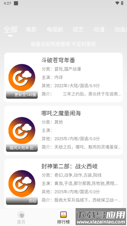 想要随时随地畅享海量影视资源吗?这款专为安卓用户打造的追剧软件绝对能满足你的需求。软件内汇集了当前最热门的高清影视内容,所有资源均可免费观看,画质清晰流畅,操作界面简洁易用。无论是追新剧还是重温经典,都能在这里找到心仪的作品,支持多种视频格式播放,带来舒适的观影体验;喜欢的朋友快来下载试试吧。