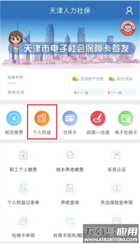 1、登录APP后点击底部导航栏"个人权益"选项;