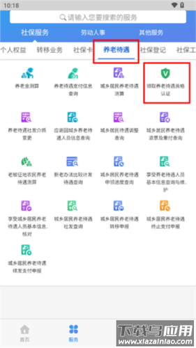 2、在社保服务中找到"养老待遇认证"功能入口;