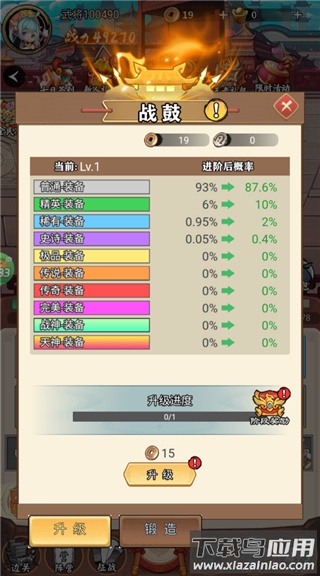 4、战鼓等级影响装备品质,优先提升战鼓等级;