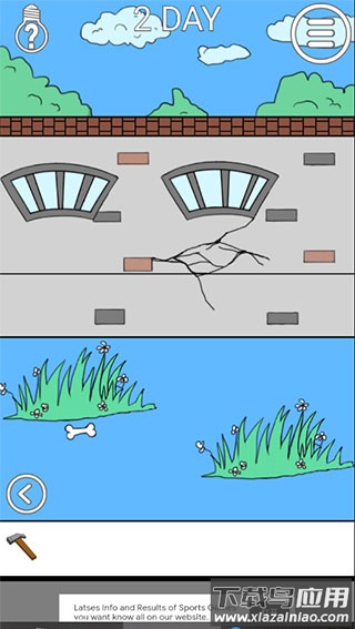 3、切换到右侧场景,用锤子敲击有裂缝的墙壁;