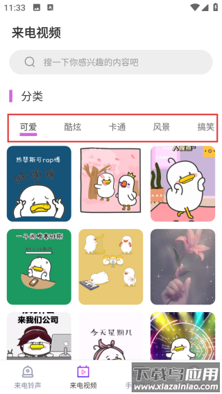 2、进入来电视频页,通过顶部分类标签筛选喜欢的视频内容;