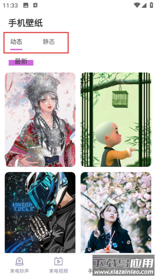 3、在手机壁纸页,点击顶部选项切换查看动态或静态壁纸;
