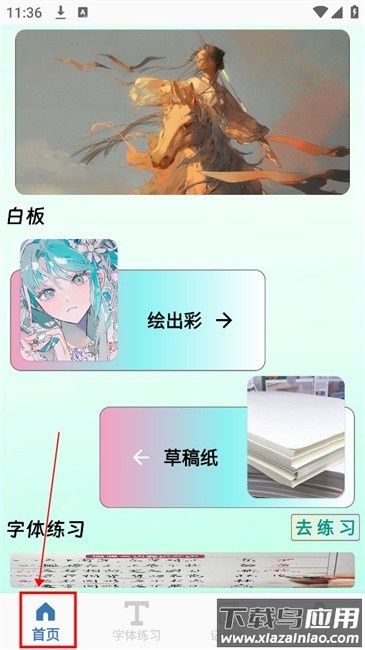 1.【首页】提供空白画布功能,支持自由书写和绘画;