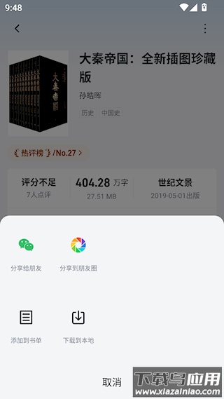 精选数十万册出版社授权书籍,包含小说、社科、外文原版等全品类内容;
