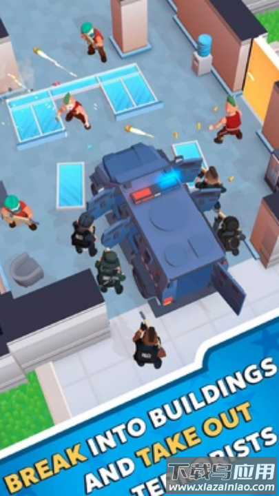 在这款充满挑战的战术射击游戏中,你将指挥一支精锐特警小队执行各类高危任务。游戏采用独特的俯视角设计,搭配明快的卡通画风,让紧张刺激的行动增添几分趣味性。从解救人质到突袭犯罪窝点,每个任务都需要精心策划战术部署;通过自定义武器装备系统,你可以为队员配备最适合的作战装备;动态生成的关卡设计确保每次行动都充满新鲜感。游戏完美融合策略与射击元素,喜欢战术类游戏的玩家快来体验吧。