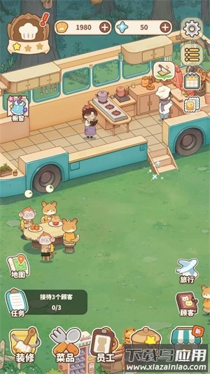 朵拉的露营餐车是一款充满童趣的模拟经营游戏,采用清新明亮的卡通画风,玩家将化身餐车老板,在露营地开启美食之旅。游戏里可以亲手制作各式料理,从烧烤到甜点应有尽有,还能种植花卉装点餐车。随着经营推进,能解锁不同风格的露营场景,招募个性十足的员工团队,邂逅形形色色的动物顾客。游戏融合了订单合成、扫雷寻宝等趣味玩法,搭配温馨的剧情故事,适合喜欢轻松治愈风格的玩家体验,感兴趣的话快来下载试试吧。