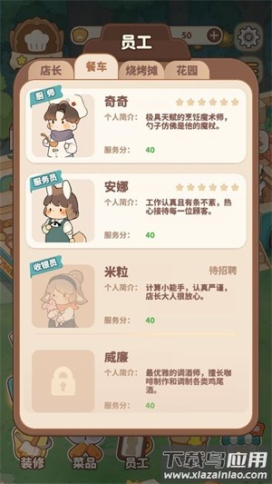 5、点击员工可以消耗金币来招募不同的员工,或者是对员工进行培训。
