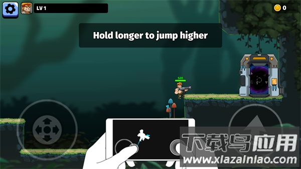 1、左侧虚拟摇杆控制移动方向,右侧按键实现跳跃动作,长按可触发二段跳;