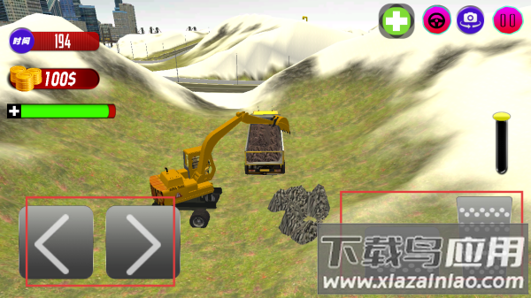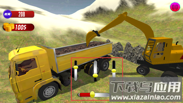 2、使用按键控制挖掘机装土,将运输车全部装满。