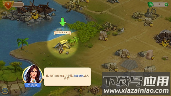 1、点击建筑小屋开启首关挑战,目标明确指向清理特定区域;