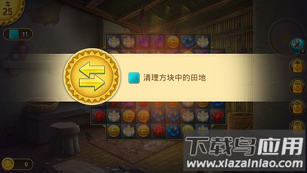 2、通过三连消除击碎蓝色方格,每个关卡设有步数限制;