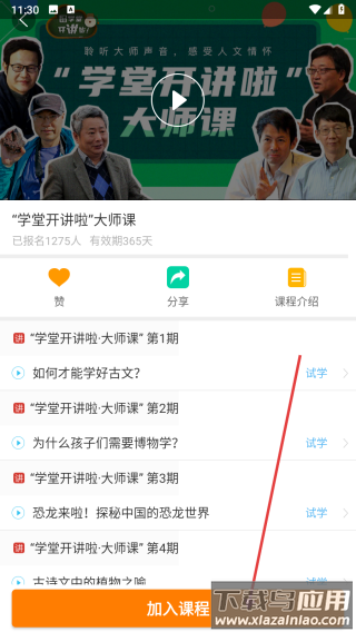 3、点【加入课程】,开始学习/试学。
