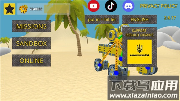 1、下载进入万物创造沙盒机械师最新版,点击SANDBOX开始游戏;