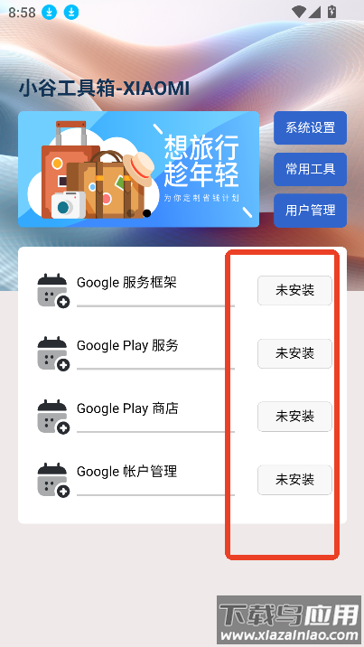 智能检测功能:自动识别设备已安装的谷歌服务,精准提示缺失项目;
