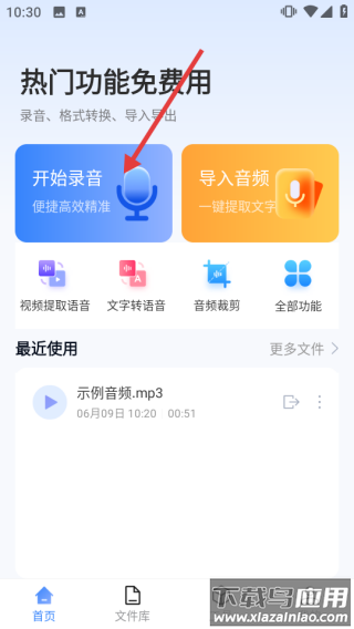 1、打开APP首页,在【热门功能免费用】区点击【开始录音】进入录音流程。