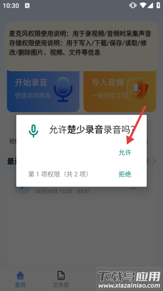 2、根据页面弹窗指示,点击【允许】授予录音权限。