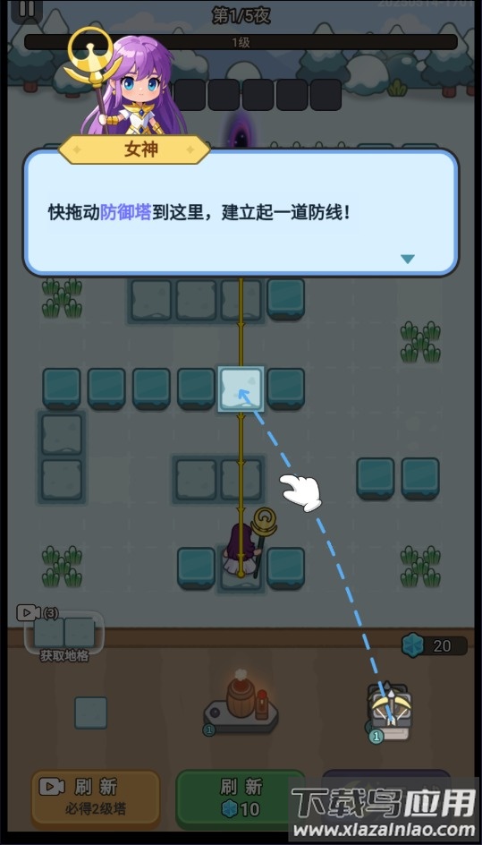 1、根据引导拖动防御塔,建立一道防线。