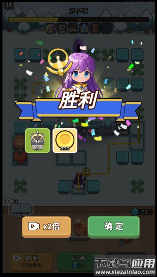 1、白天阶段:开放背包系统和沙盘地图,可自由拖动防御塔进行布局,通过合并相同建筑实现升级强化;