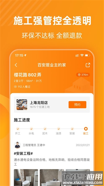 4.每个施工环节都有视频验收标准,手机随时查看工地进展;