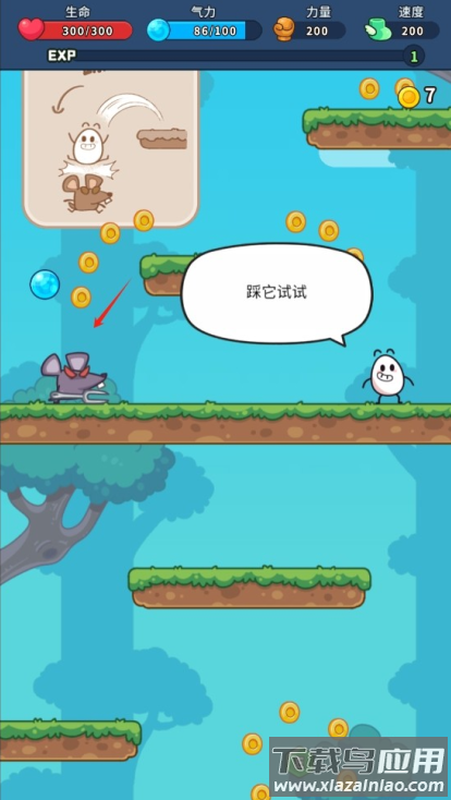 3、遇到怪物可点击踩踏击杀,类似马里奥的操作方式,灵活利用地形高低差;