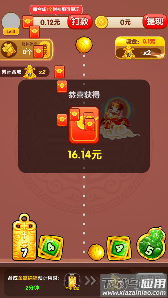 2、每完成一次合成都会触发奖励机制,高级财神像可兑换专属福利,收集越多回报越丰厚;