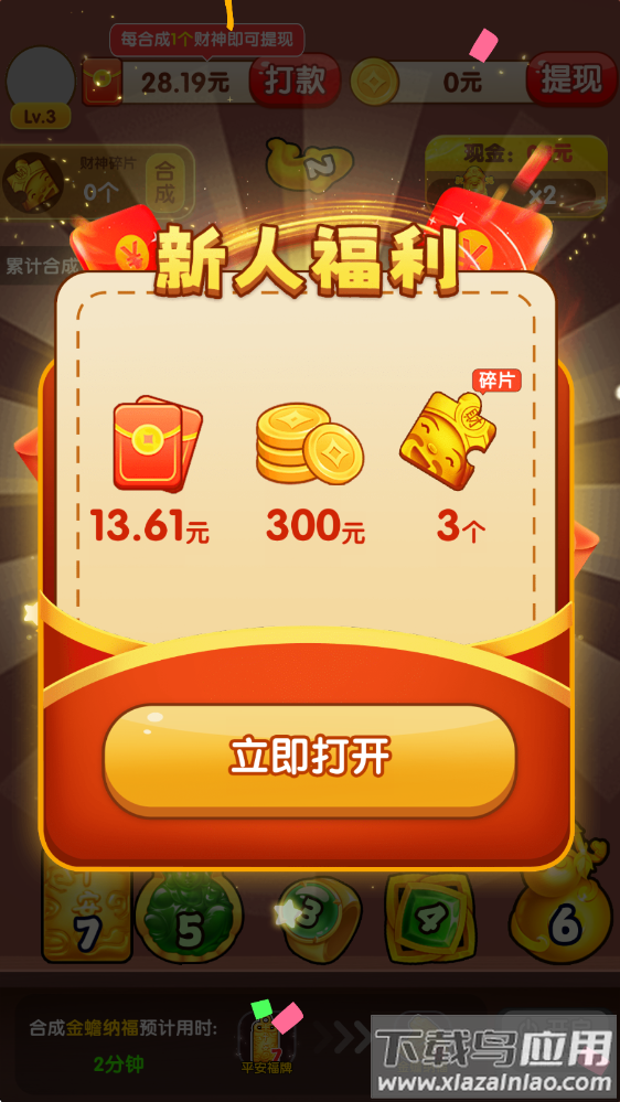 3、新手首次合成双财神可领取专属大礼包,包含加速道具和双倍奖励卡;
