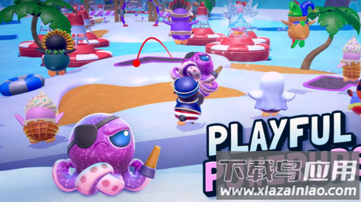 在这款充满欢乐的冰雪派对游戏中,你将化身圆滚滚的Q版角色,与最多20名玩家展开萌趣十足的竞技对决。游戏采用明亮鲜艳的卡通画风,设计了各种脑洞大开的障碍赛道,从旋转的巨型锤子到湿滑的冰面平台,每轮比赛都充满意想不到的挑战。你需要灵活操控角色翻滚跳跃,在混乱中保持平衡,最终冲过终点线赢得胜利;游戏支持单人匹配或好友组队,更有丰富装扮系统让你打造独特造型,喜欢休闲竞技的玩家快来下载体验吧。