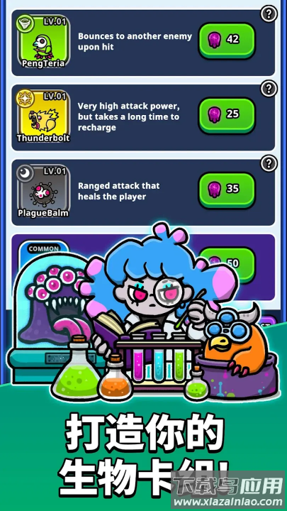 突变生物在毒雾中疯狂进化,你必须不断调整战术才能存活;通过击败敌人获取生物卡牌,激活羁绊效果增强队伍实力;随机出现的武器工坊允许你将普通装备合成传奇神兵;单指滑动即可控制角色走位,自动攻击系统让你专注策略部署。