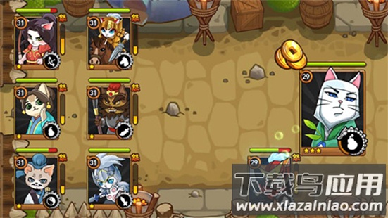 收集培养三国喵将,通过升级突破提升属性;根据敌方阵容调整站位,发挥兵种克制优势;挂机战斗节省时间,持续获得成长收益;挑战特色副本关卡,赢取专属装备奖励;参与跨服竞技,用实力证明自己的搭配策略。