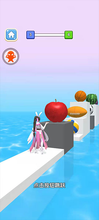 2、瞄准水果堆或易拉罐塔跳下,利用角色重量压扁所有物品获取分数;