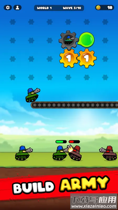齿轮战争坦克英雄是一款融合策略与放置玩法的卡通风格休闲游戏。在游戏中玩家将扮演战场指挥官,通过巧妙放置齿轮来组建自动化坦克生产线。这些机械部队会自动与敌人展开激烈对抗,齿轮连接越精密,坦克生产效率越高。游戏采用轻松上手的操作方式,同时考验玩家的布局策略和资源管理能力。随着关卡推进,你需要不断优化工厂结构,解锁更强力的坦克型号来应对愈发强大的敌军。喜欢策略塔防和机械题材的玩家可以下载体验这款独特的战争模拟游戏。