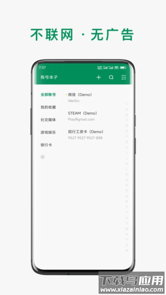 生活中各类账号密码繁多难以记忆?账号本子app帮你轻松解决这一烦恼。这款工具专注于本地化密码管理,采用PBKDF2和AES-256双重加密技术,所有数据仅存储于手机端,无需联网即可使用;简洁的界面设计支持分组管理、模糊搜索、指纹解锁等实用功能,还能通过加密备份文件实现跨设备迁移。无论是社交账号、银行卡信息还是会员资料,都能分类保存随时调用,喜欢的就来下载体验。
