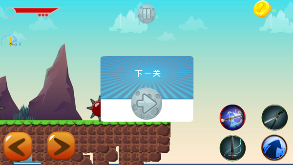 3、操控角色在平台间跳跃移动,注意躲避机关陷阱;