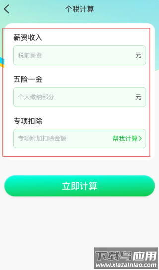 2、个税计算页,填写税前薪资、五险一金个人缴纳额,设置专项附加扣除,点击【立即计算】。
