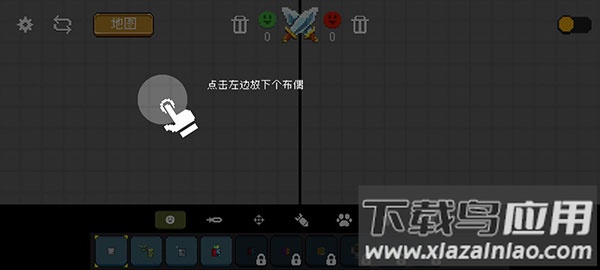 2、左侧屏幕点击放置第一个布娃娃角色,右侧同样操作添加对手;