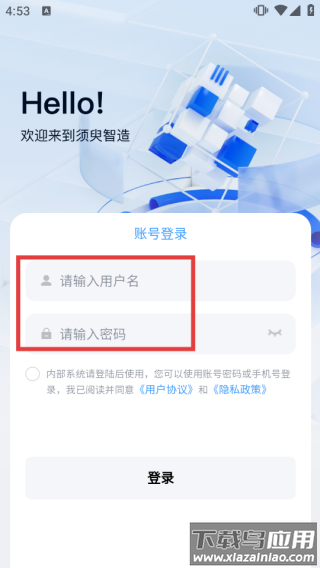 2、在须臾智造登录页,输入【用户名】和【密码】;