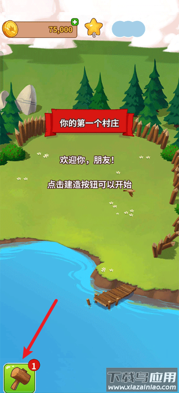 1、首次进入游戏会引导建造初始村庄,点击左下角按钮选择基础房屋开始建设;