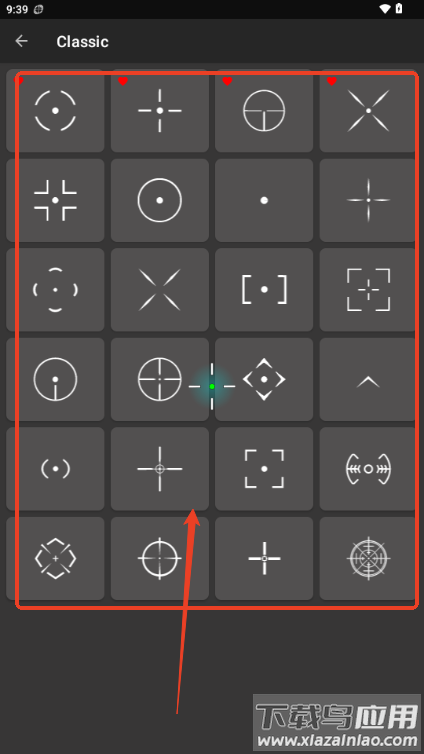 2、在这里可以选择各种各样的准星;