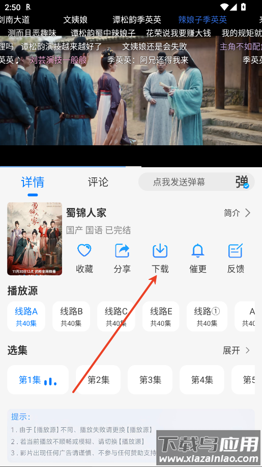 1.打开想要下载的影视剧详情页。