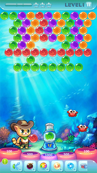 1. 创新性加入动态障碍系统,深海区的漩涡海星会改变泡泡轨迹,云间区的流动雾气需要把握时机消除;