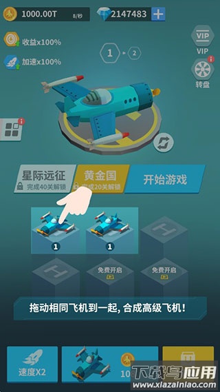 2、拖拽相同等级战机重叠,自动合成高一级新机型;