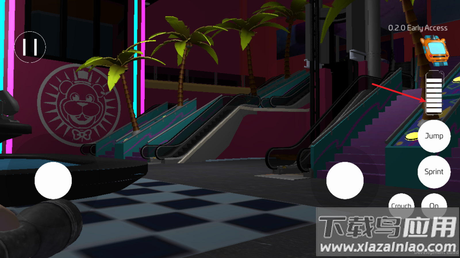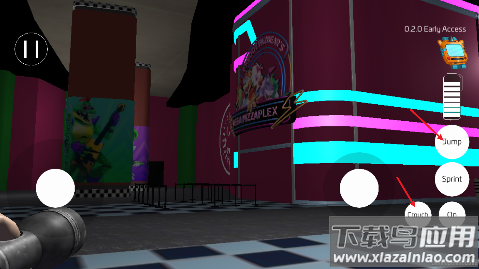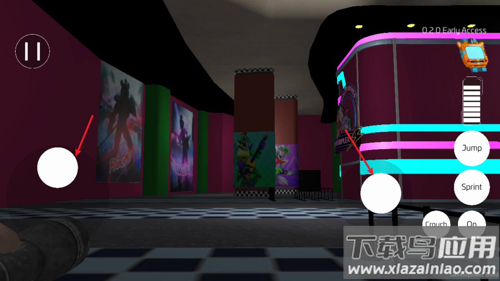 2、右侧功能区包含基础动作按键,Crouch实现蹲伏动作,Jump用于跨越障碍;