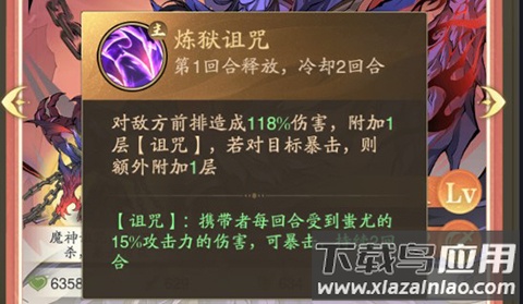 蚩尤唯一的群体攻击技能,附带控制效果并能为团队提供持续两回合的暴击伤害加成。